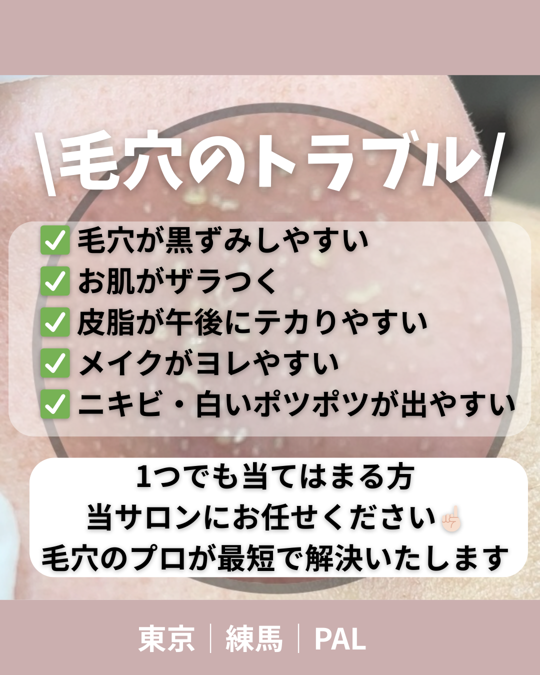毛穴ケア専門サロンPALの「毛穴ケア」のご案内
